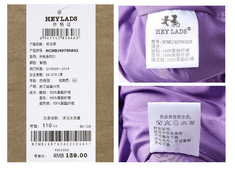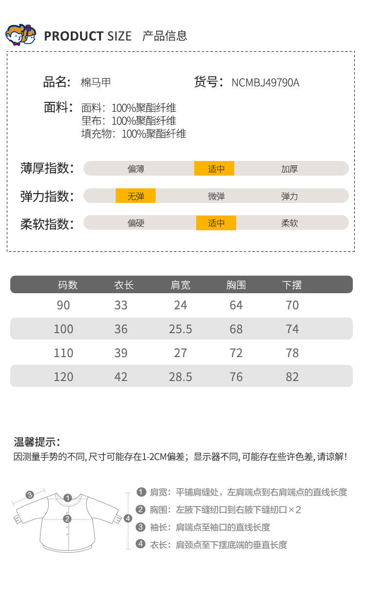 已选:HEY LADS男生女生童装2019冬季时尚系列女小童纯色拉链棉马甲