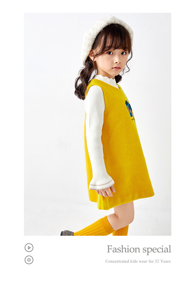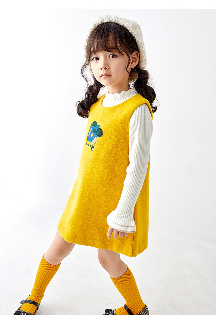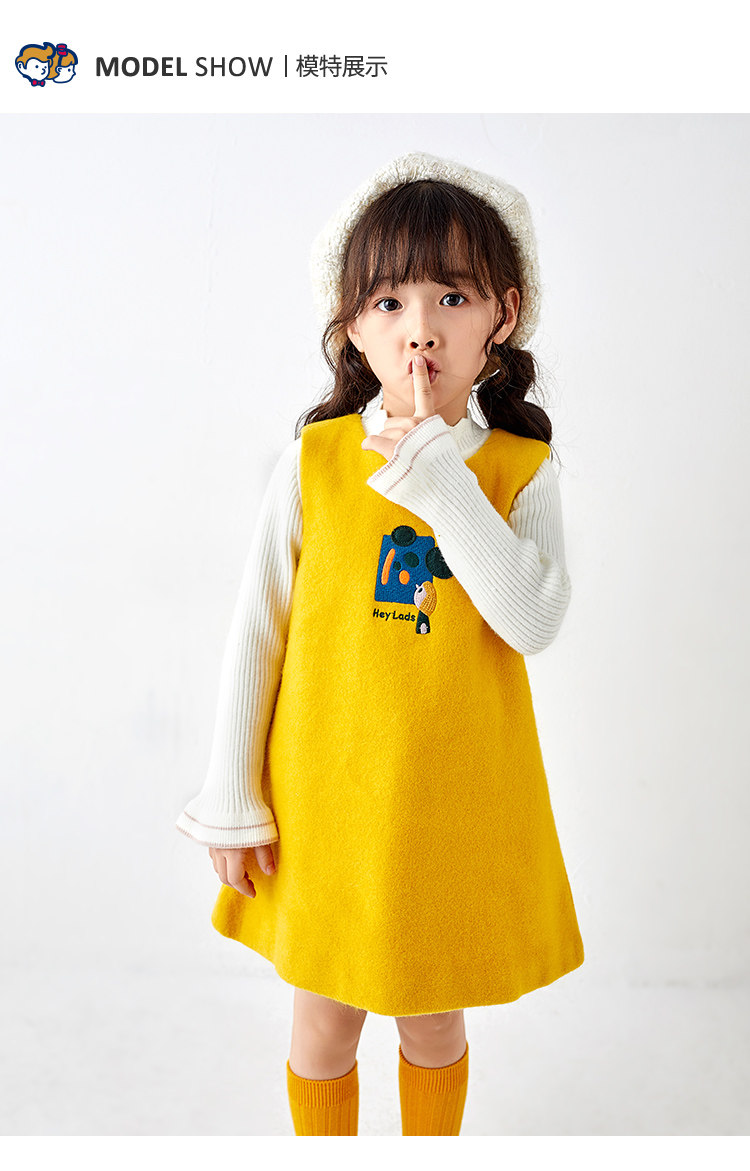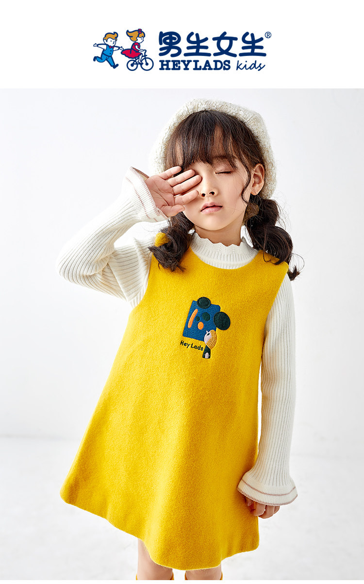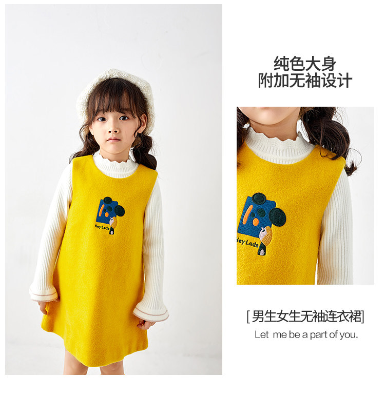 已选:HEY LADS男生女生童装2019冬季棉麻系列女小童纯色圆领无袖连衣裙
