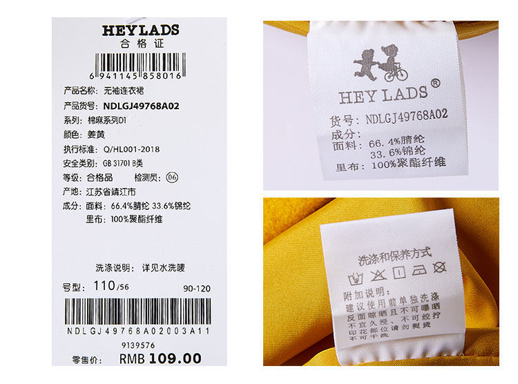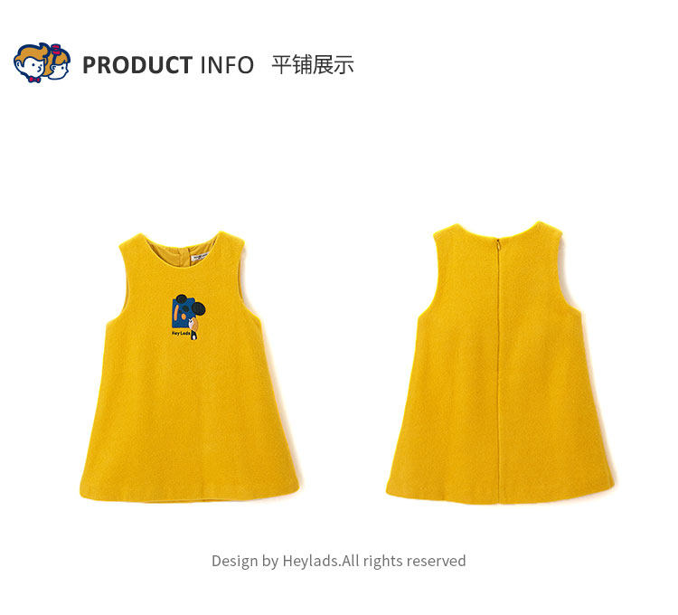 HEY LADS男生女生童装2019冬季棉麻系列女小童纯色圆领无袖连衣裙