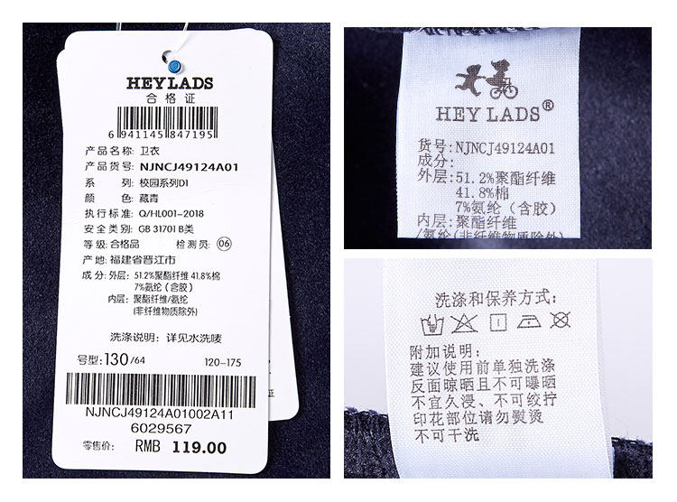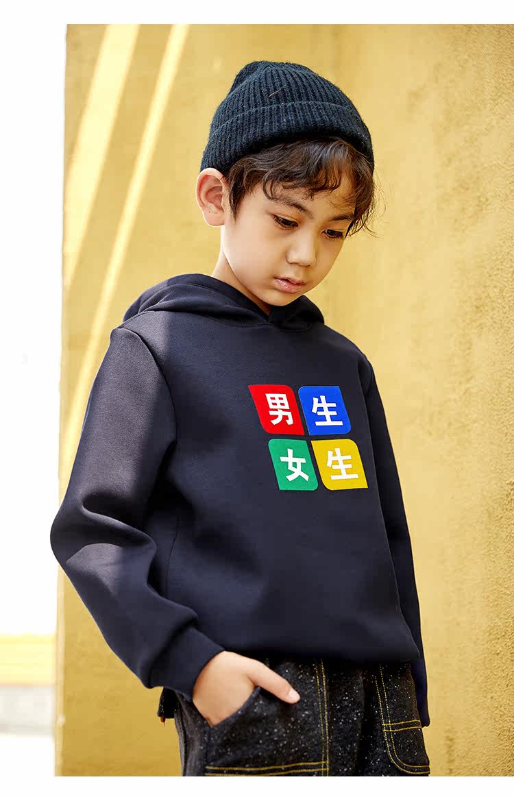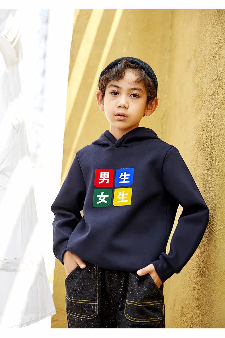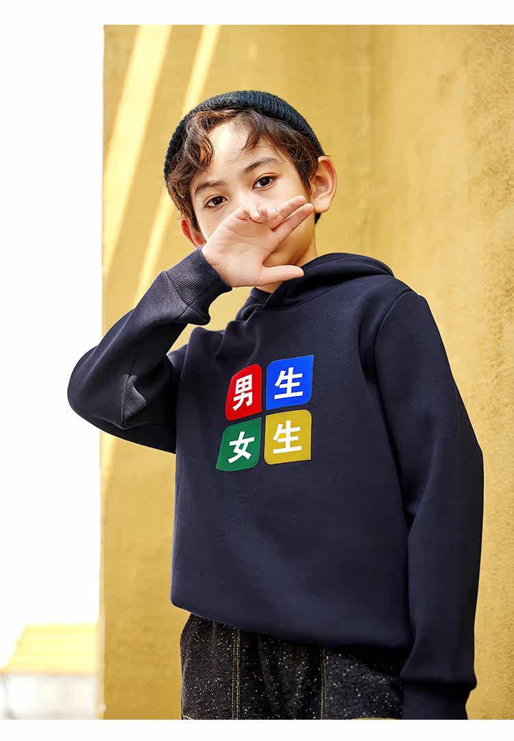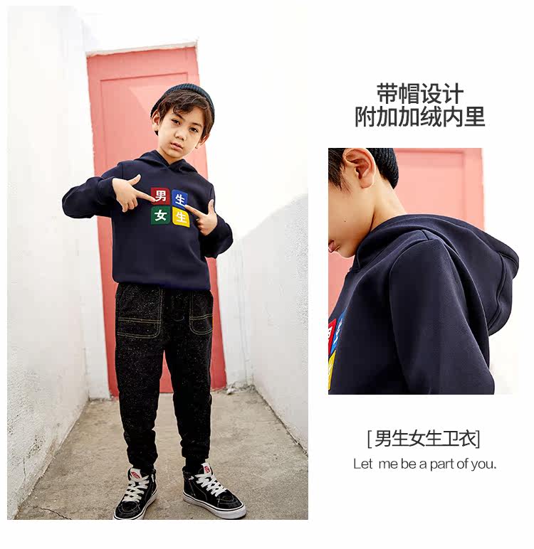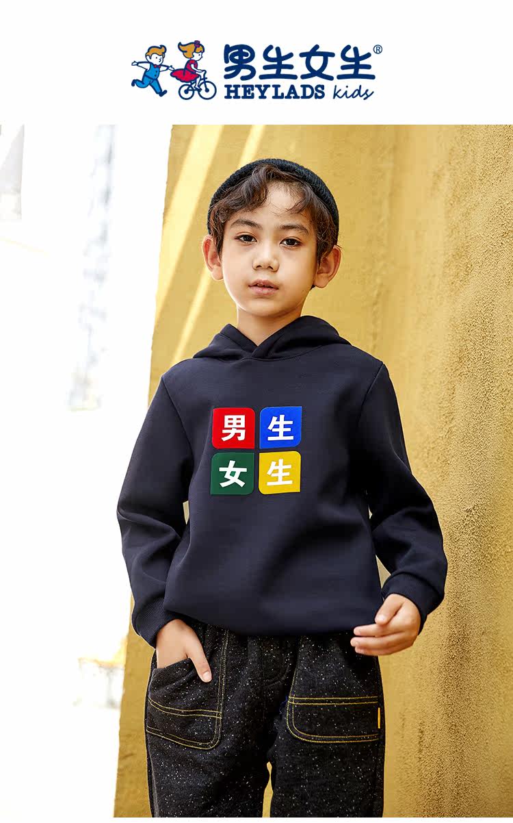 已选:HEY LADS男生女生儿童童装2019冬季校园系列男大童加绒带帽卫衣