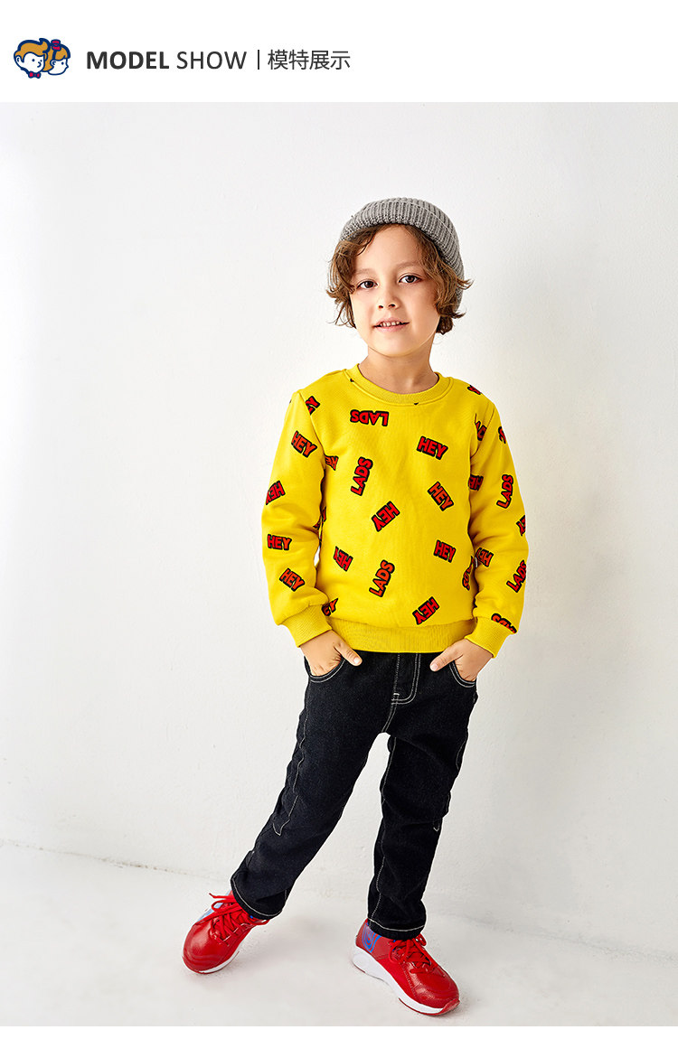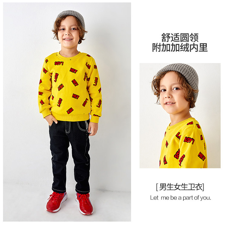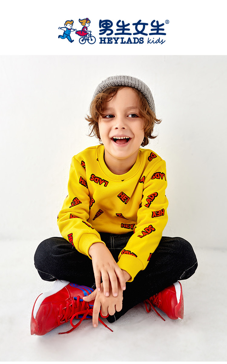 HEY LADS男生女生童装2019冬季时尚儿童男小童圆领加绒套头卫衣