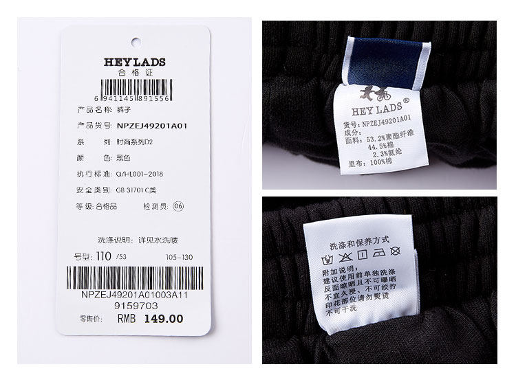 已选:HEY LADS男生女生儿童童装2019冬季时尚系列男小童加厚长裤束脚