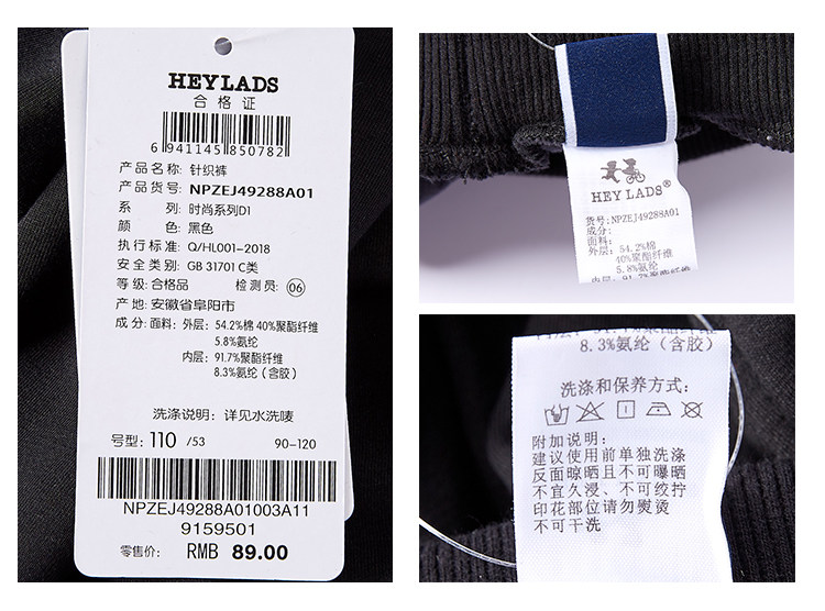 已选:HEY LADS男生女生童装2019冬季时尚儿童男小童加绒加厚束脚针织裤